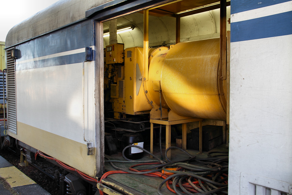 The train in Windhoek Station, with two technicians working on the air conditioning unit of our carriage. Raymond leaving the carriage to take some pictures.