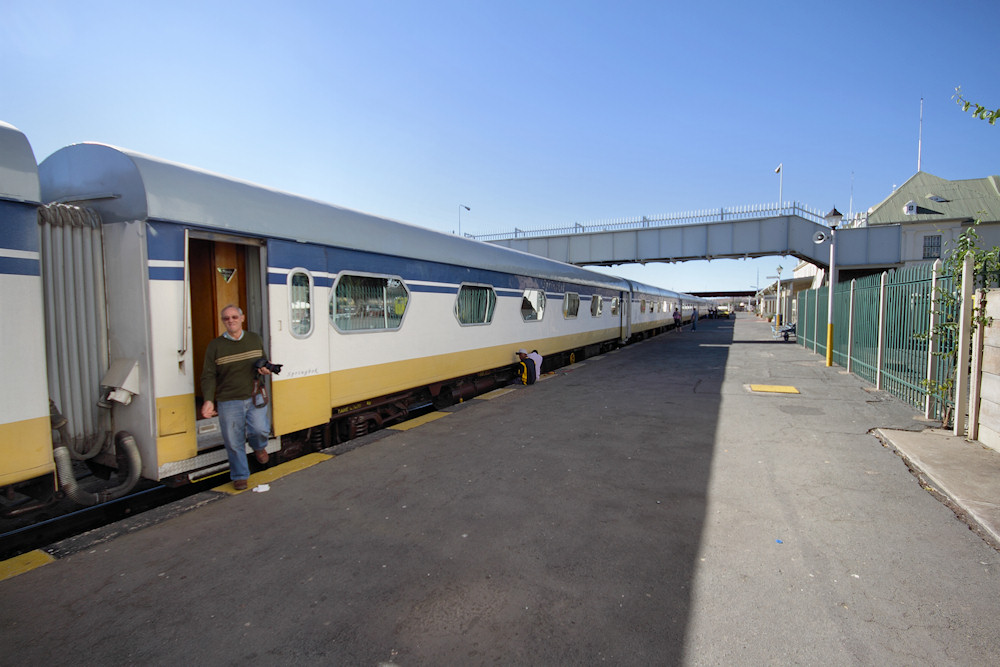 Finally, when everyone managed to clear customs, the bus could depart on the 40km trip to Windhoek. Kobus kept us entertained during the trip to the station with snippets concerning landmarks that we passed. We arrived at the station slightly after the scheduled departure time of 16:00, but that wasn't a problem as technicians were busy with the air conditioning units on two carriages. This gave us a bit of time to take some pictures around the station.