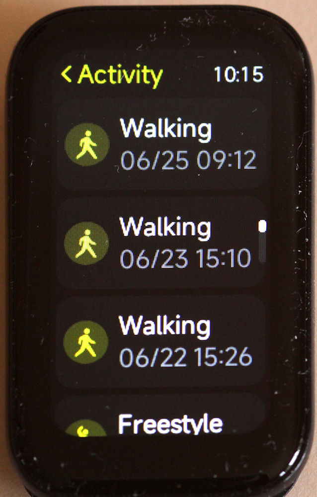 The watch also keeps a record of activities (under the Activity menu), and about twenty activities seem to be stored.