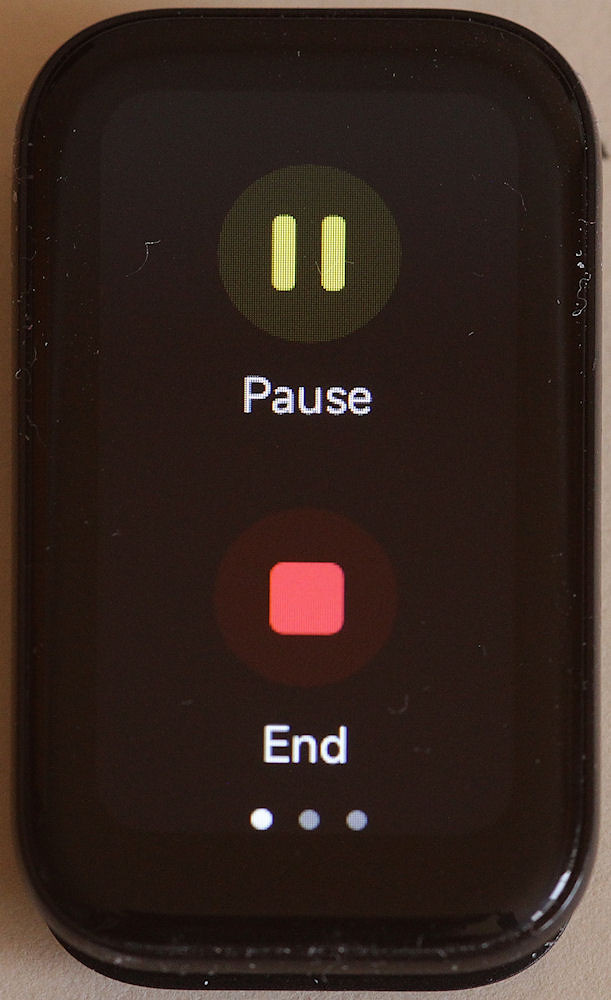 Once you have completed your activity, you have to swipe to the right to access the Pause/End screen. To stop an activity, you must long press on the End button. (It took a bit of trial and error to figure this out.)