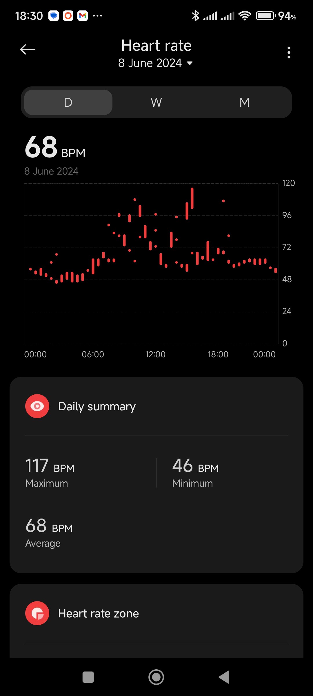 If you tap the Measure button as shown in the pic above, the watch will complain and not take a measurement if it regards your wrist as not being horizontal. What I find rather strange is that it does manage to take readings while you are exercising or sleeping, regardless of the angle of your wrist, .