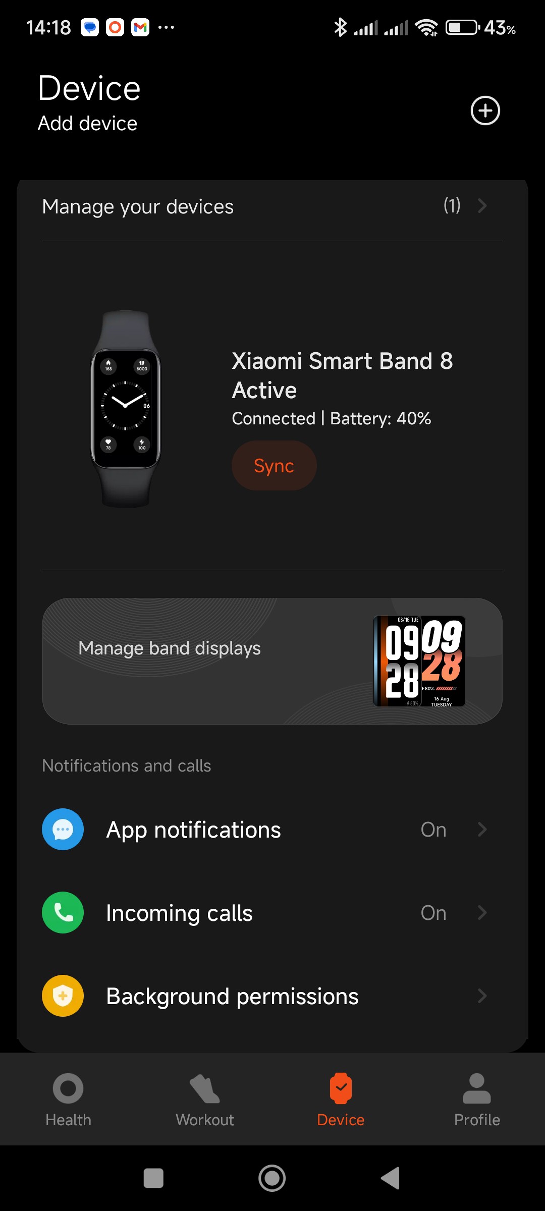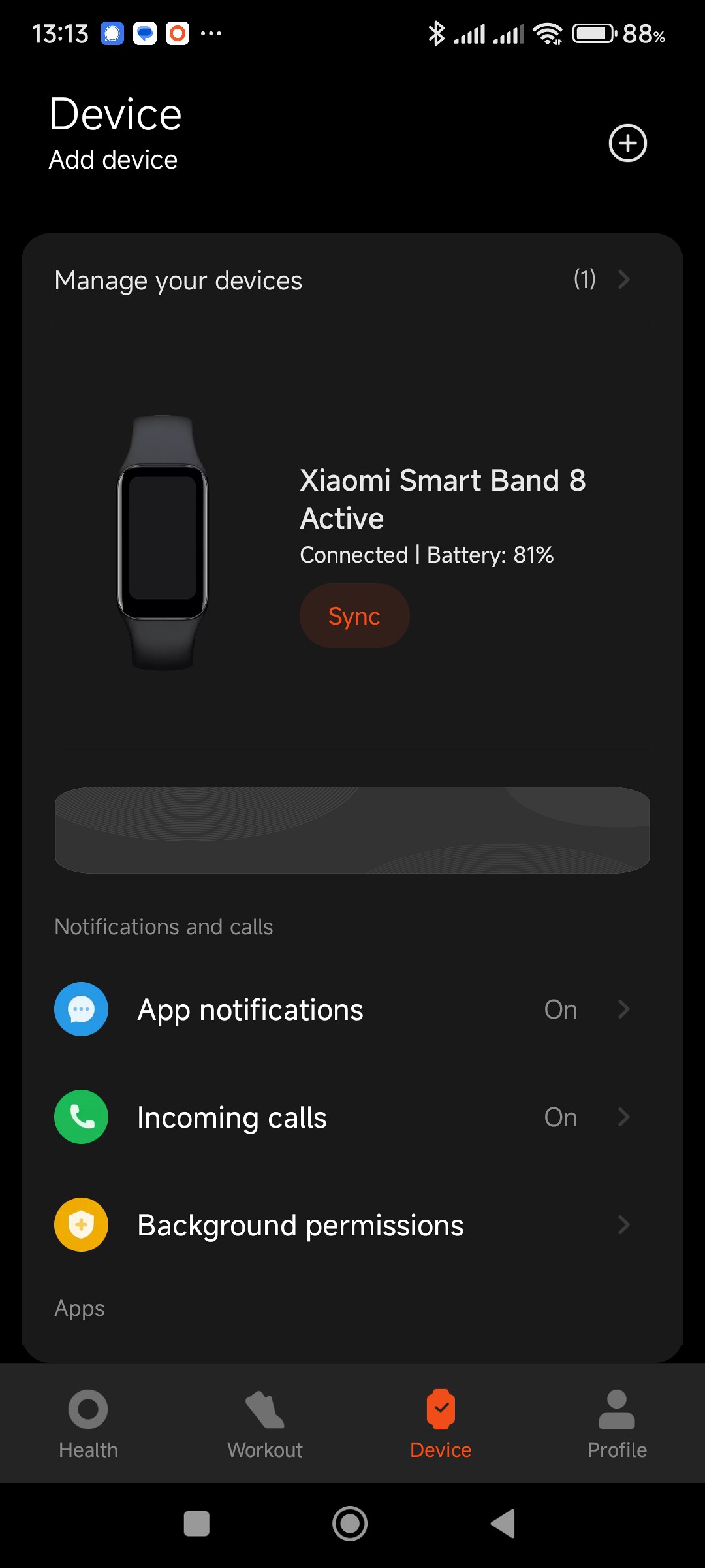 The Device screen in the Mi Fitness app