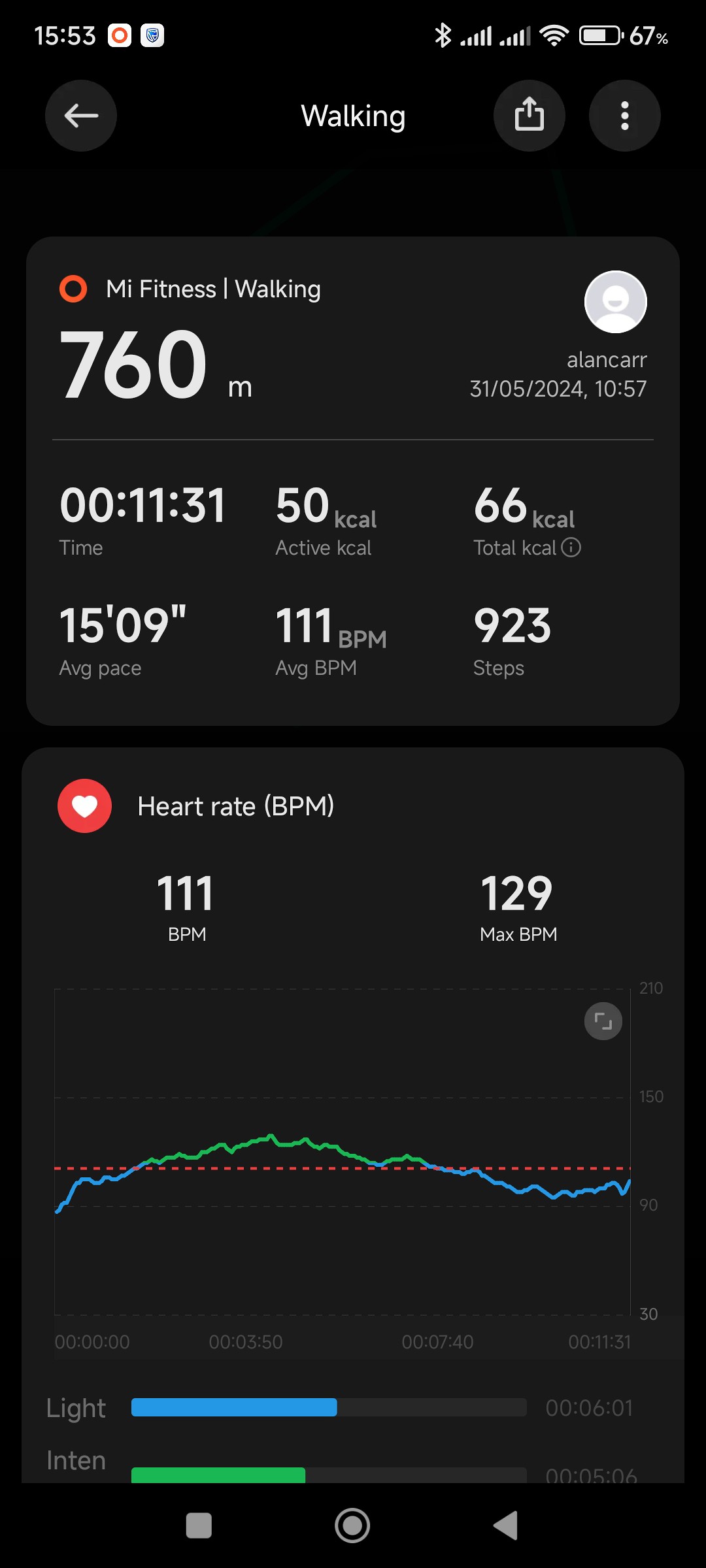 Showing the activity screen after a walk