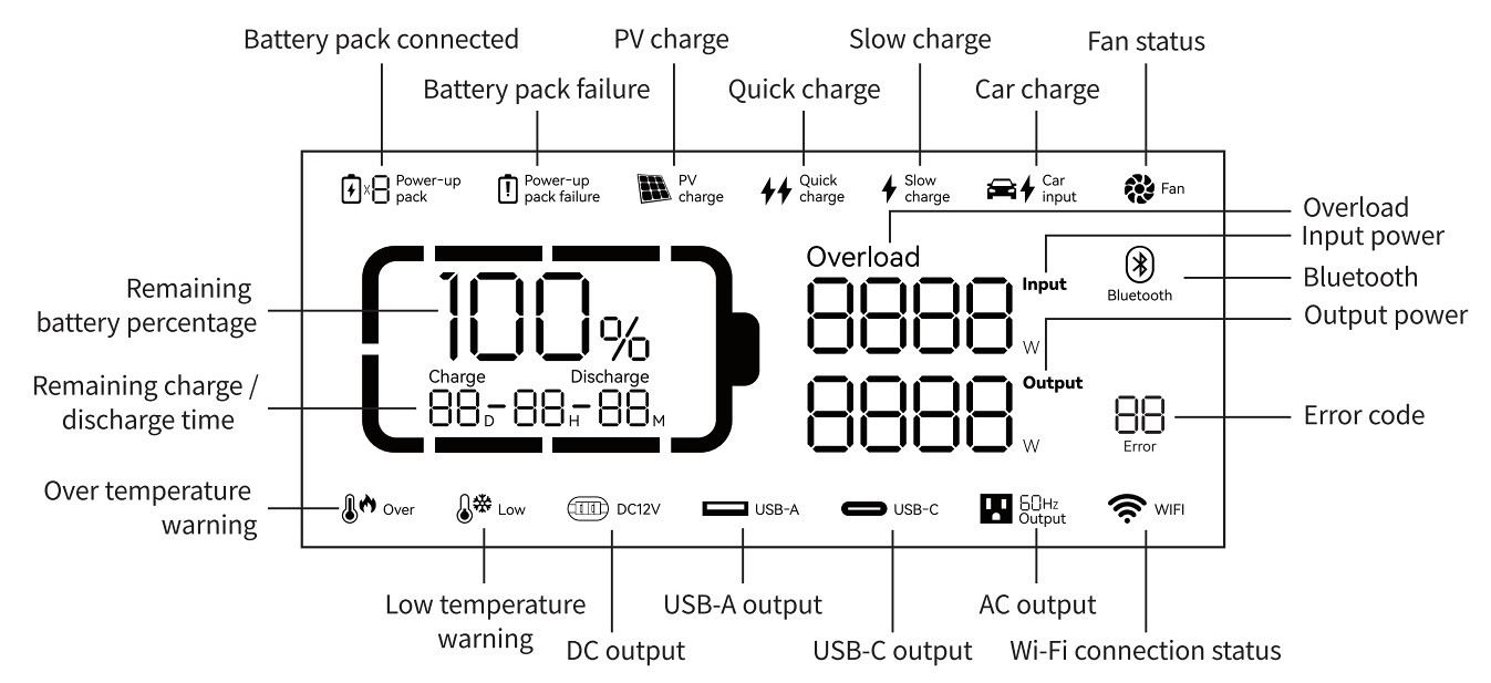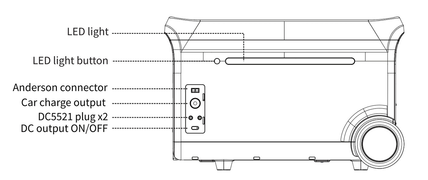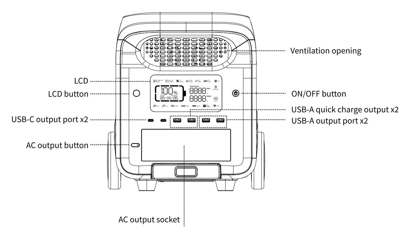 The slow charge mode is on by default when power station is turned on, and can be switched to quick charge mode by the button.