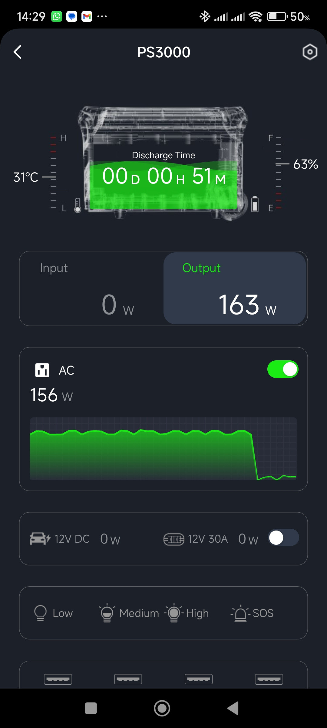 The PS3000 also supports simultaneous solar and AC charging. I tested this with the unit in "slow charge" mode: