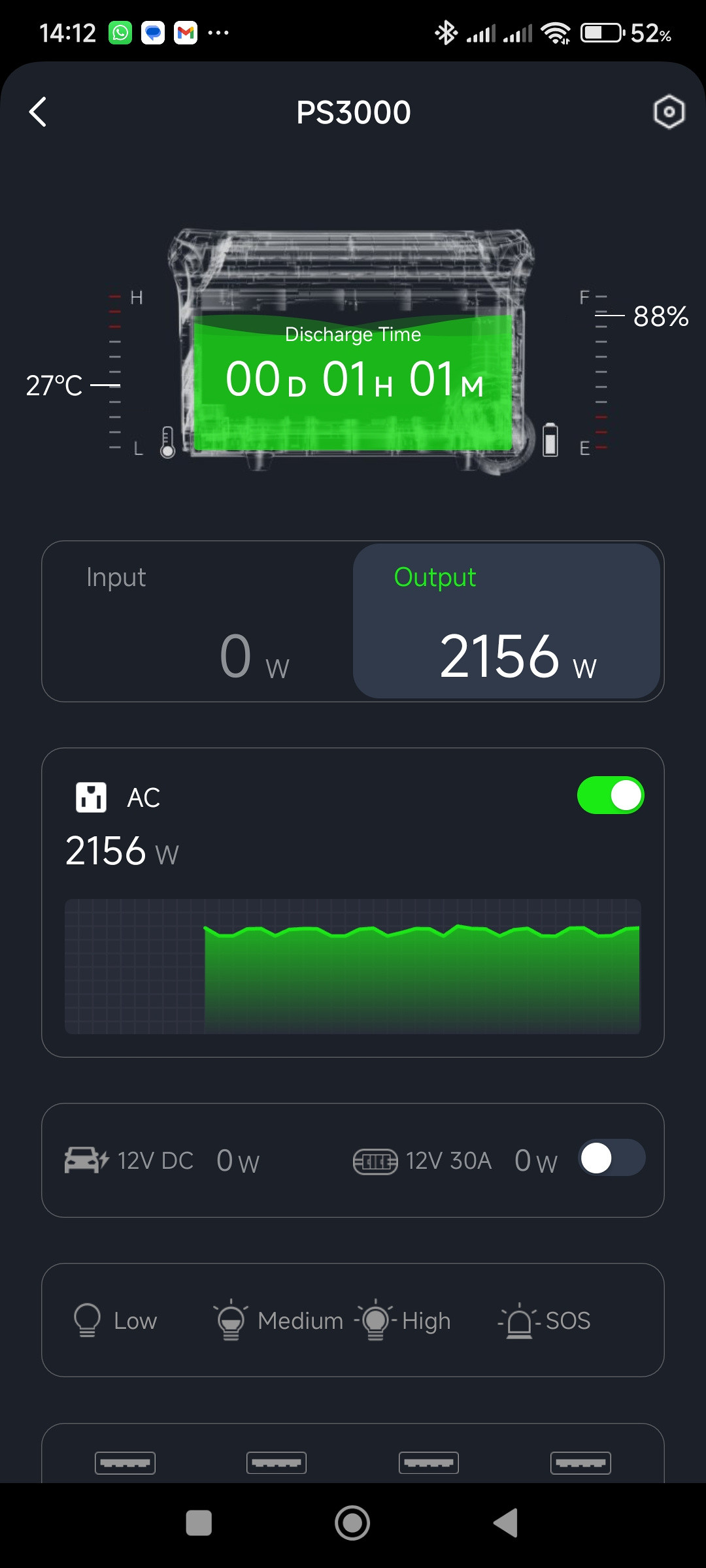 The Hinen app allows monitoring and control of several features of the PS3000. Setup requires creating an account and establishing a WiFi connection between the unit and the phone. Although a Bluetooth option is mentioned, I did not encounter it during setup. The WiFi connection allows remote access to the unit, provided it is already switched on — it cannot be powered on remotely.