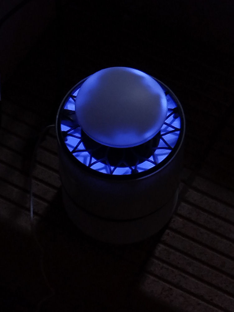 I tried to take a pic of the trap in use, but the lighting really got the better of me. This is the best I could manage, so hopefully you will get a feel for the intense blue light emitted by the device.