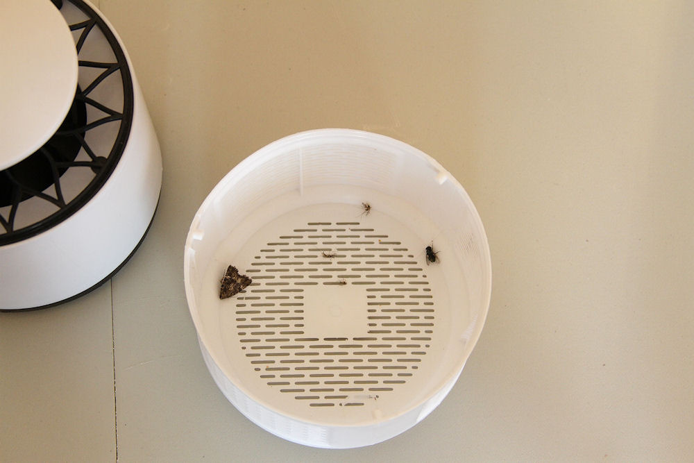 I have now used the trap for four weeks and I probably have to revise my opinion. During this period, I have been monitoring what has been caught every week. So far, 20 mosquitoes, 2 flies, 1 moth and 1 miggie (gnat) have been caught.