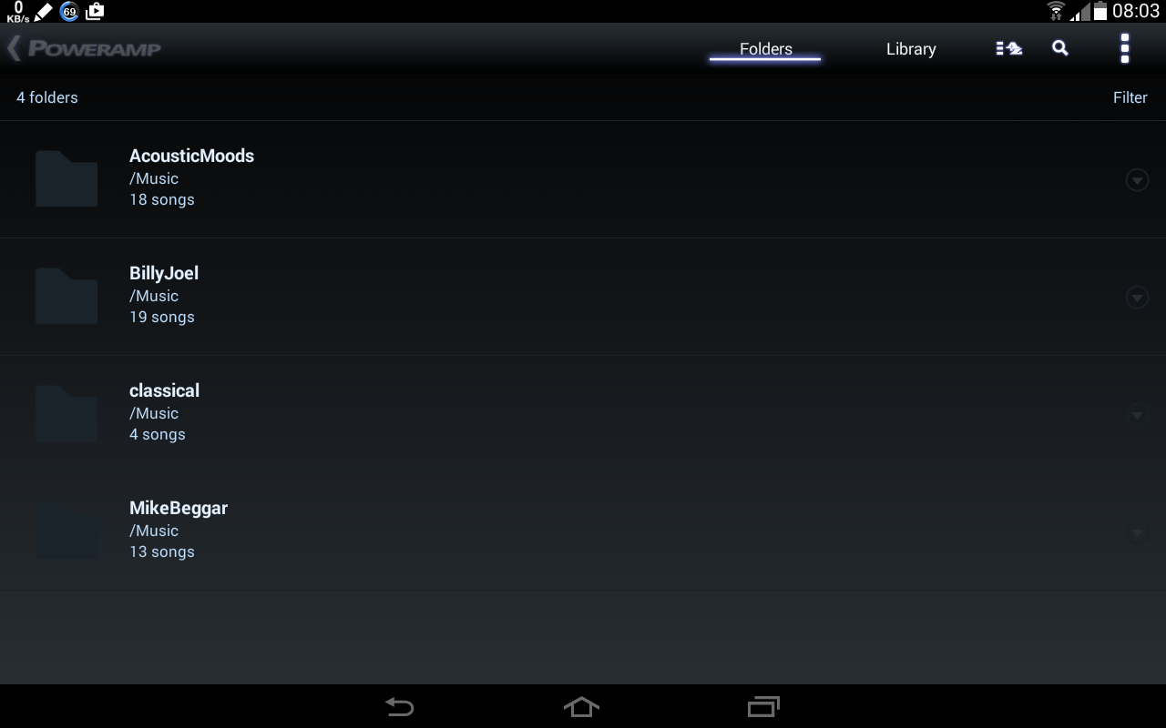 On the other hand, Poweramp has also undergone a major upgrade, including the way in which it handles folders. You can now specify which folder or group of folders it should look in for your music selection.