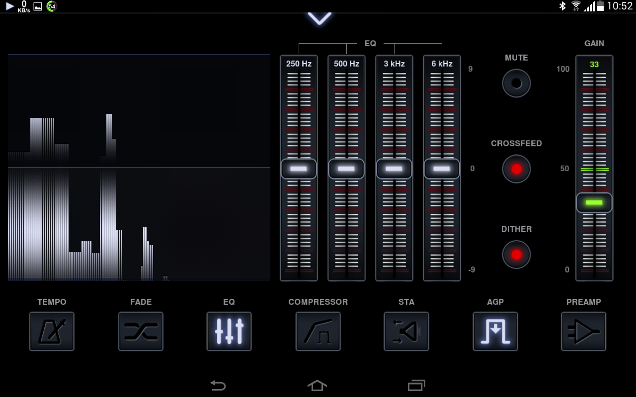 The equalizer screen