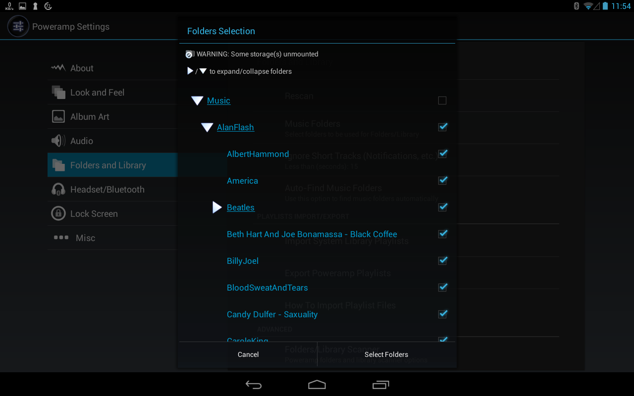 Poweramp's new folder selection