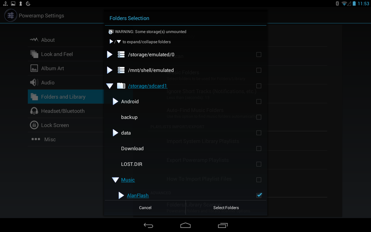 Another view of Poweramp's new folder selection