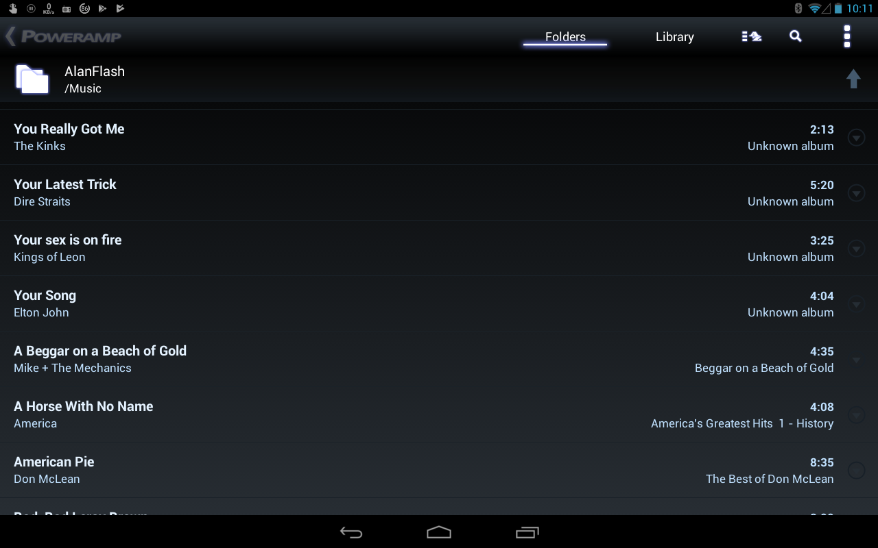 Showing the folders section of Poweramp