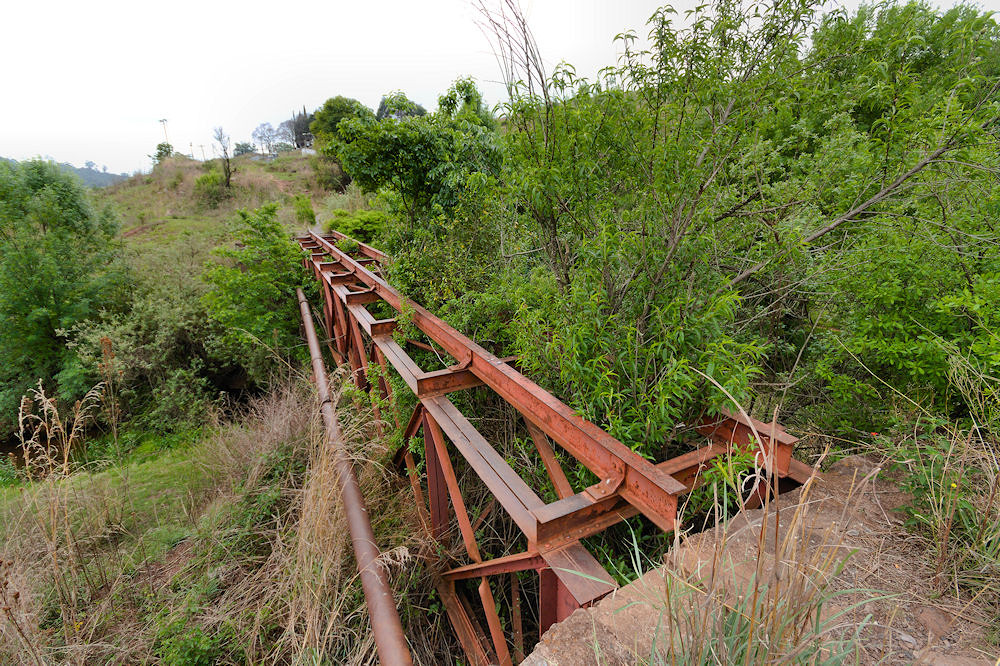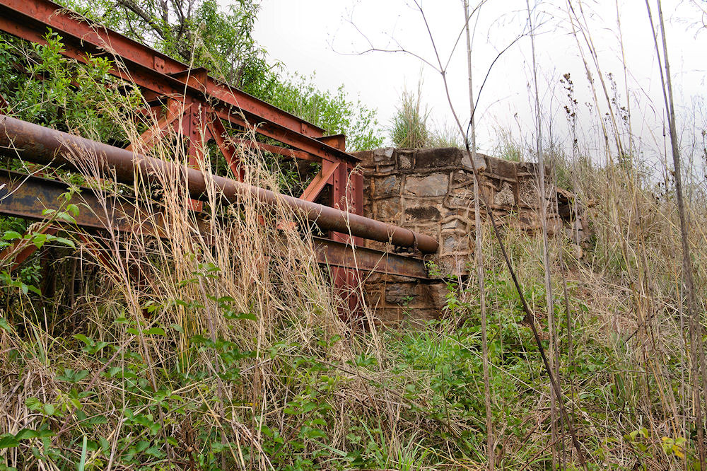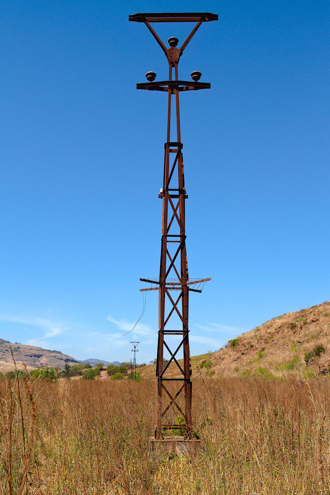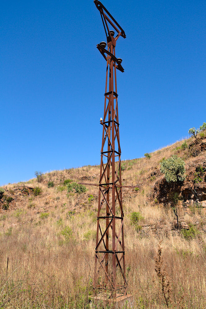 Along the road, you will find many remnants of the old power line which ran from the Belvedere power station at Bourke's Luck to Pilgrim's Rest. Unfortunately, almost all of the cables, and many of the pylons, are no longer there [3].