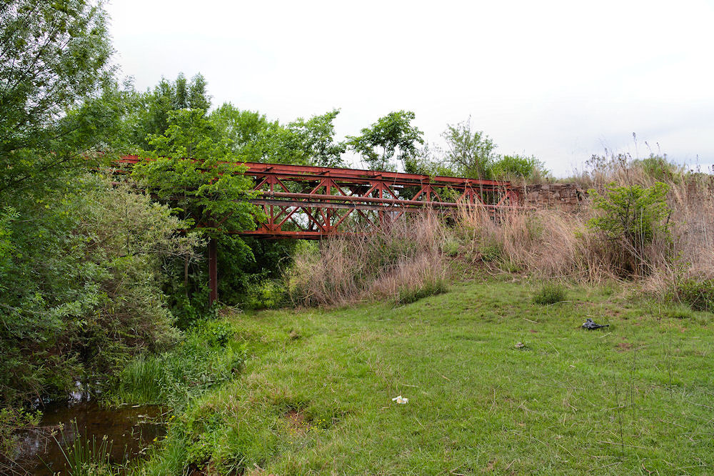 On the south side of the Joubert Bridge, you can see the old tracks crossing the road. On the west side of the road, you can still see some of the remaining pylons heading towards the mine.