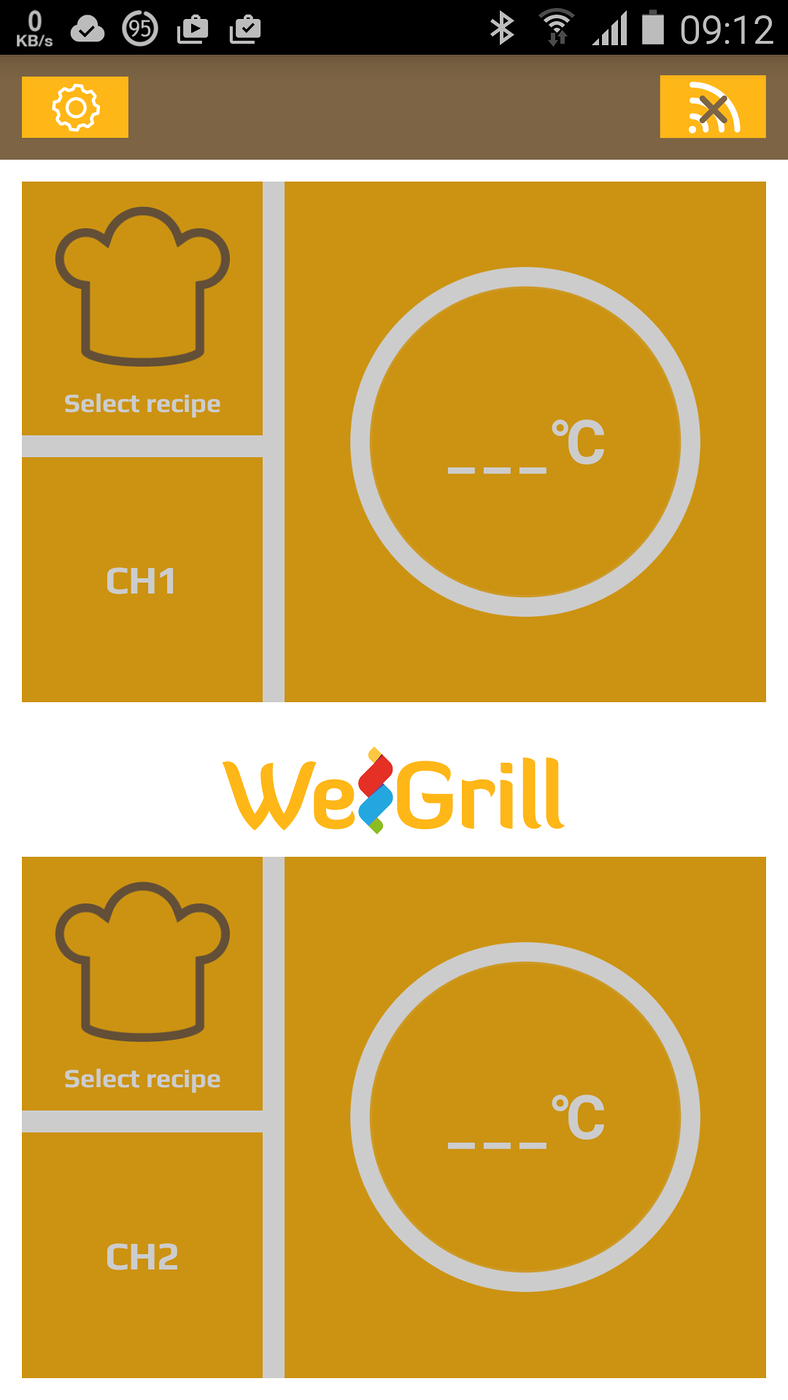 The opening screen of the WeGrill app