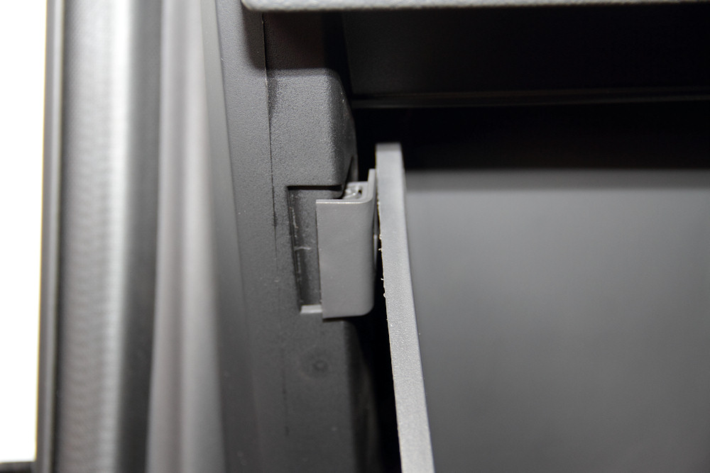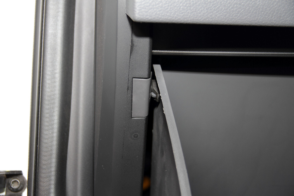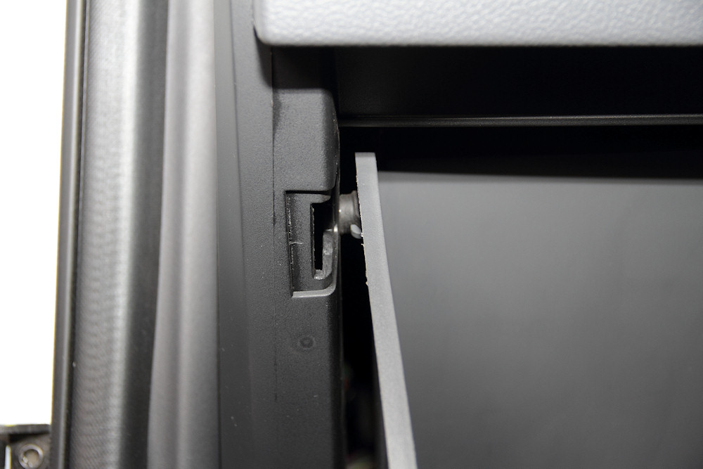 Removing the retaining clips makes it much easier to move the stopper in and out past the frame. The glove box can now be pulled forward to reveal what's behind it. Once again, it may be necessary to flex the side of the glove box to get the stopper past the frame. Make sure that you empty everything out of the glove box, otherwise the contents will end up on the floor of the bakkie!